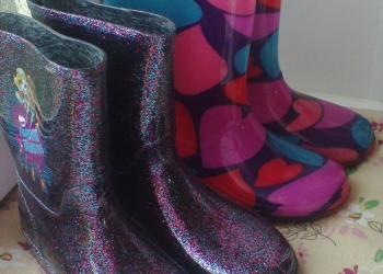 Новые резиновые сапоги 34р (темные с блестками) и 31р(розовые пятнистые)