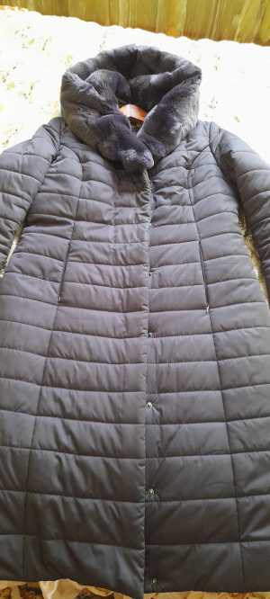 Продам пуховик женский. Новый. Размер 46-48. Цвет серый. Притален. Отстегивающийся капюшон с меховой опушкой. Теплый, легкий.
