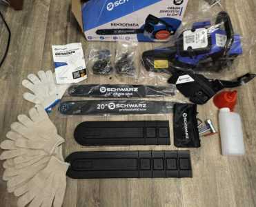 Бензопила цепная бензиновая SCHWARZ (52 см3, 7 л.с., 4.5 кВт, 13500 об/мин) Новая, заводилась для проверки.