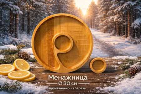 Изысканная круглая деревянная менажница из березы с соусником от ТриАлес — это идеальное дополнение к вашему столу, придаст...